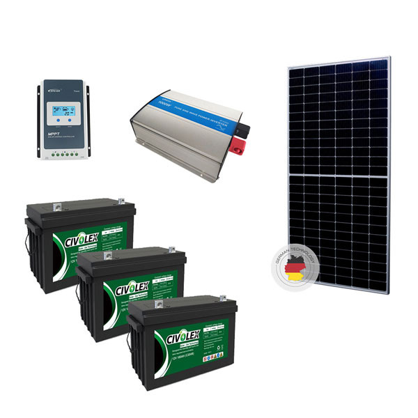 پکیج خورشیدی روشنایی و تلویزیون 3600 وات ساعت (مناسب خونه باغ و کانکس و عشایر و کمپرها) با خروجی اینورتر